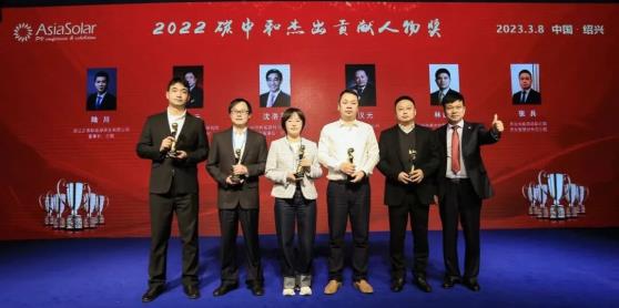 为表彰在光伏领域坚持创新,并取得显著成绩、做出突出贡献的优秀企业或个人,高端对话结束后,主办方举行了隆重的颁奖盛典,对光伏行业6位碳中和杰出贡献人物、13位创新人物、12家碳中和杰出贡献企业,24家创新企业、4家钙钛矿光伏创新企业、2家水面光伏卓越匠心企业、14家光伏支架&跟踪系统创新企业和8家分布式光伏整县推进卓越贡献企业、26家分布式创新品牌企业、6家优秀经销商进行了表彰。